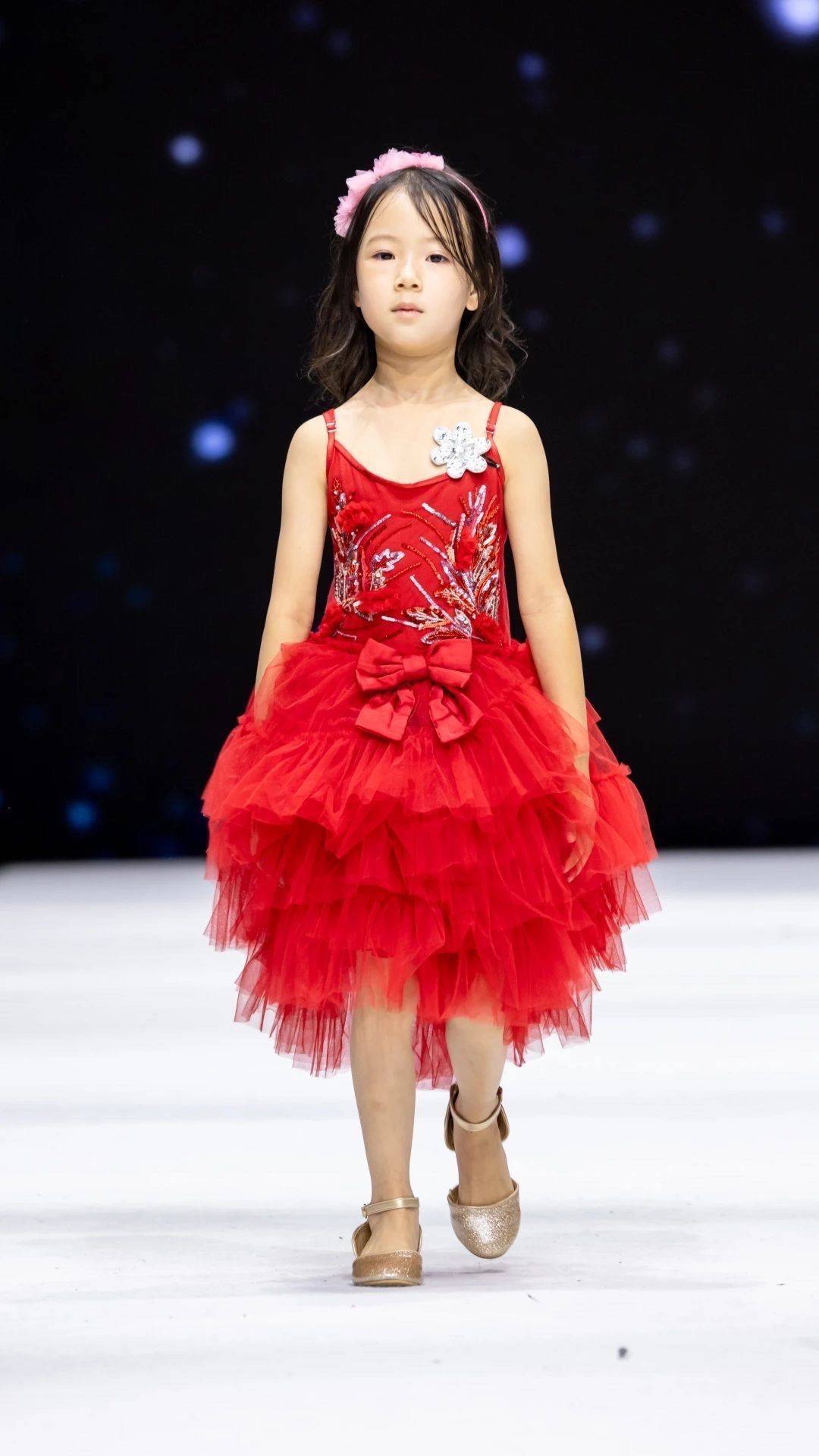 小海豚身穿喜庆的红色新中式小褂,搭配蓝色打底裤,整个人显得格外精神。虽然没有露出正脸,但从侧影和身形就能看出遗传了妈妈的优良基因,温婉气质初现端倪。